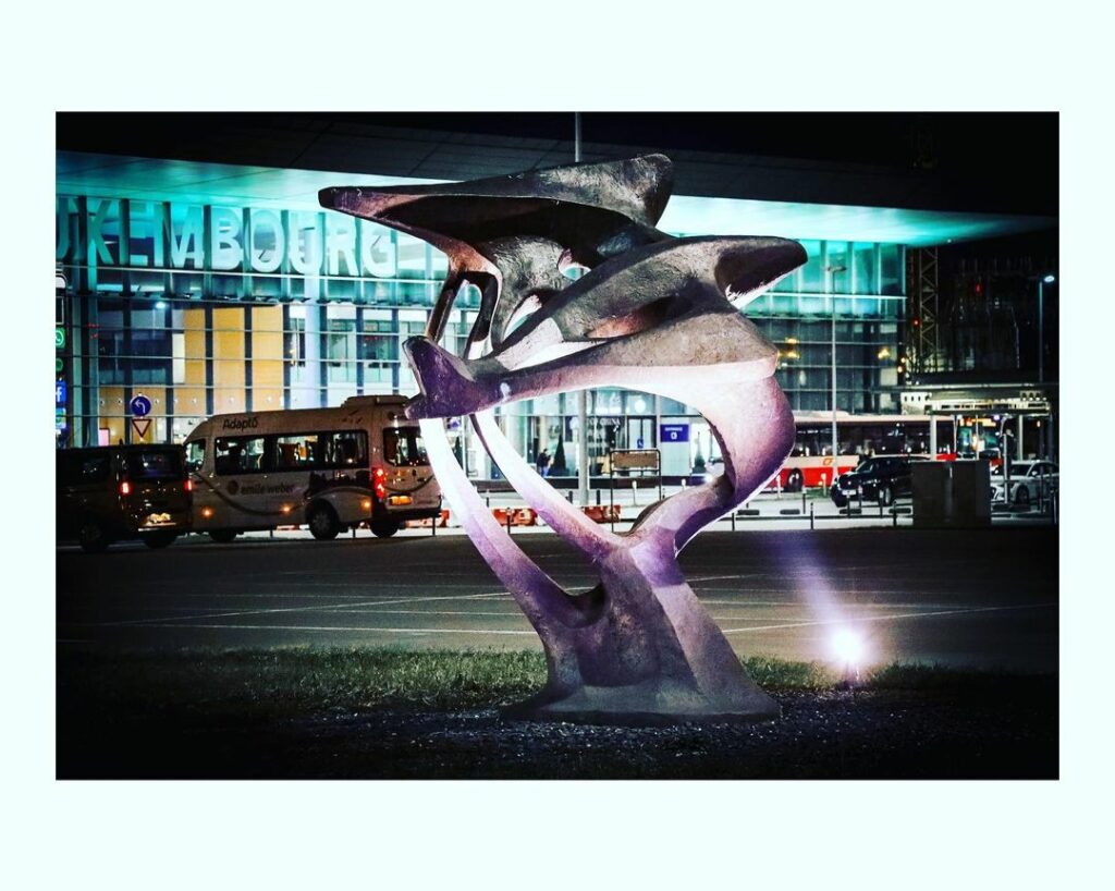 “L’envol” est une sculpture en bronze de l’artiste Charlotte Engels, qui se trouvait devant l’ancien terminal de Findel de 1979 à 2003. Depuis 2010, la sculpture a trouvé une nouvelle place devant le nouveau terminal Findel.