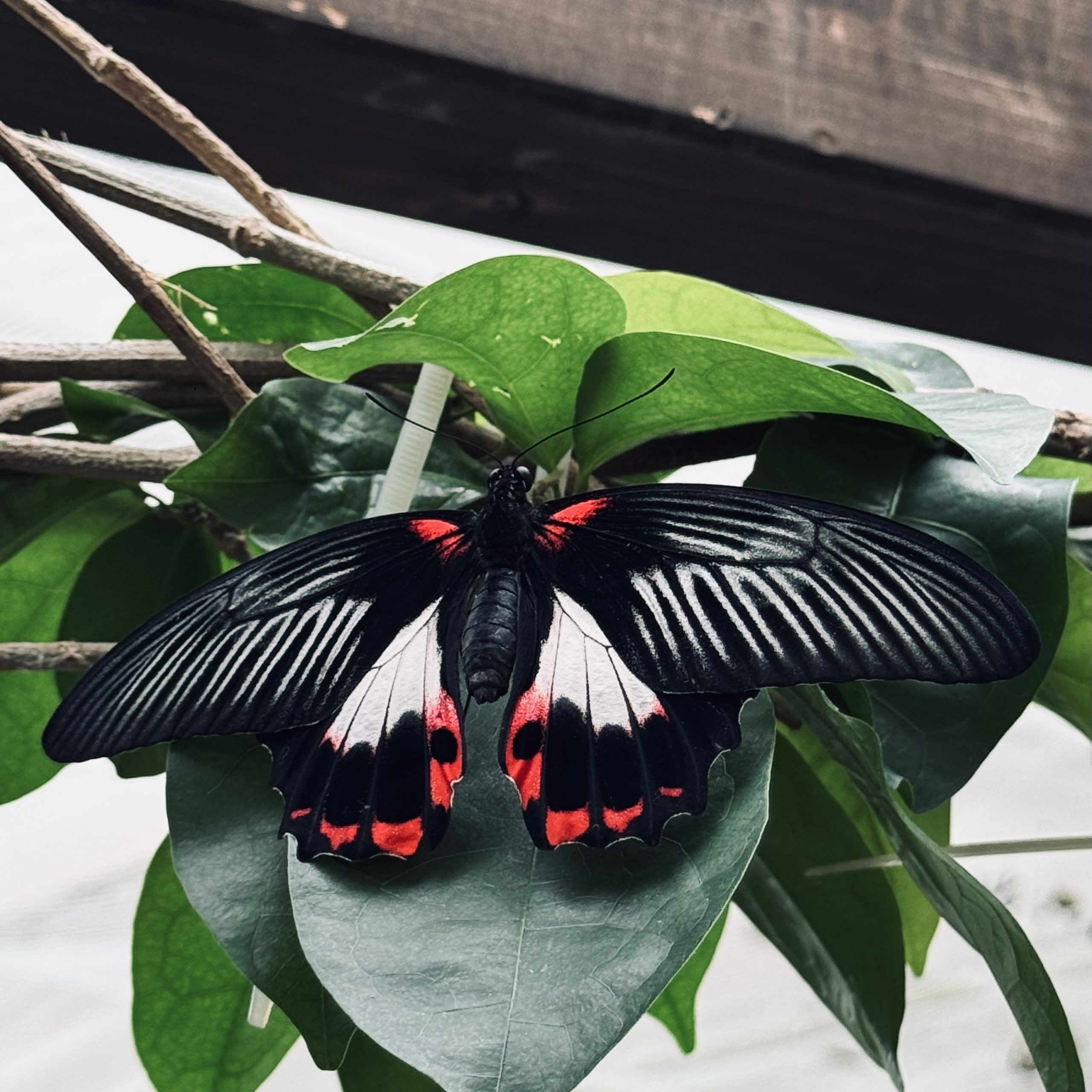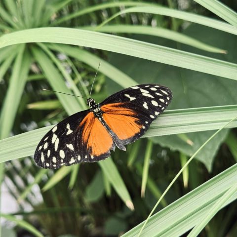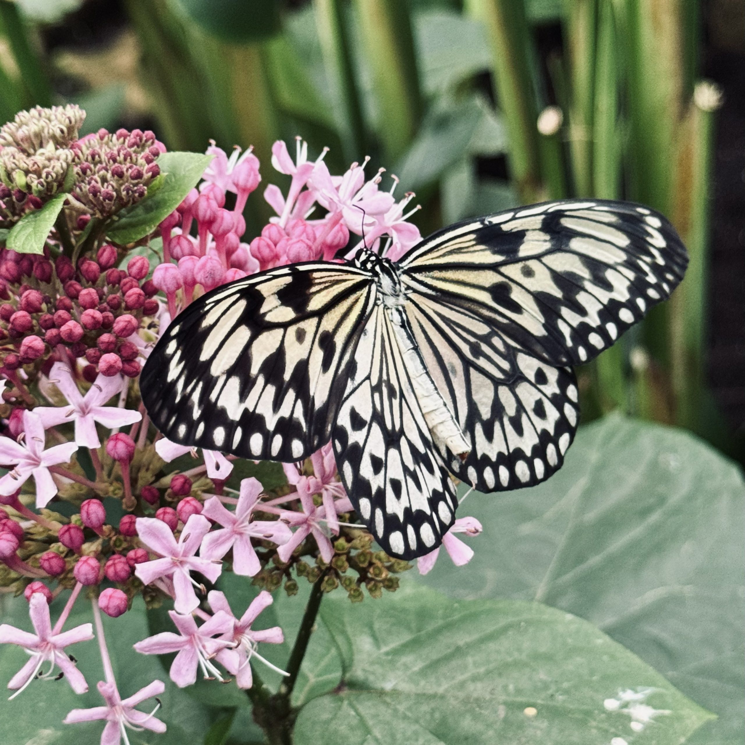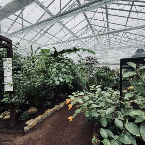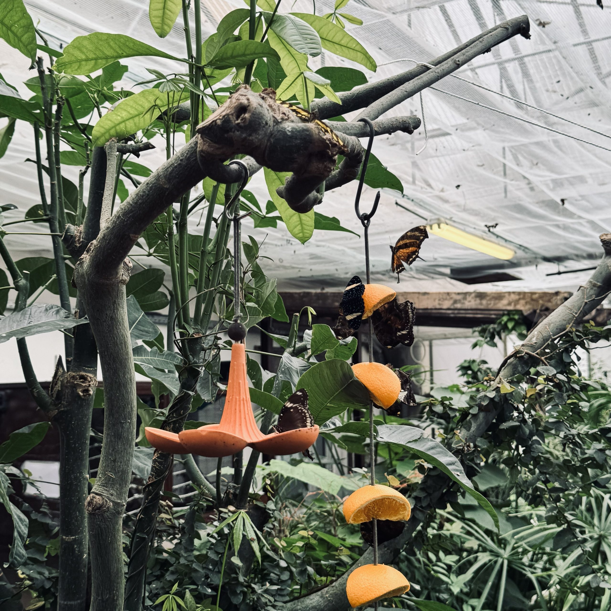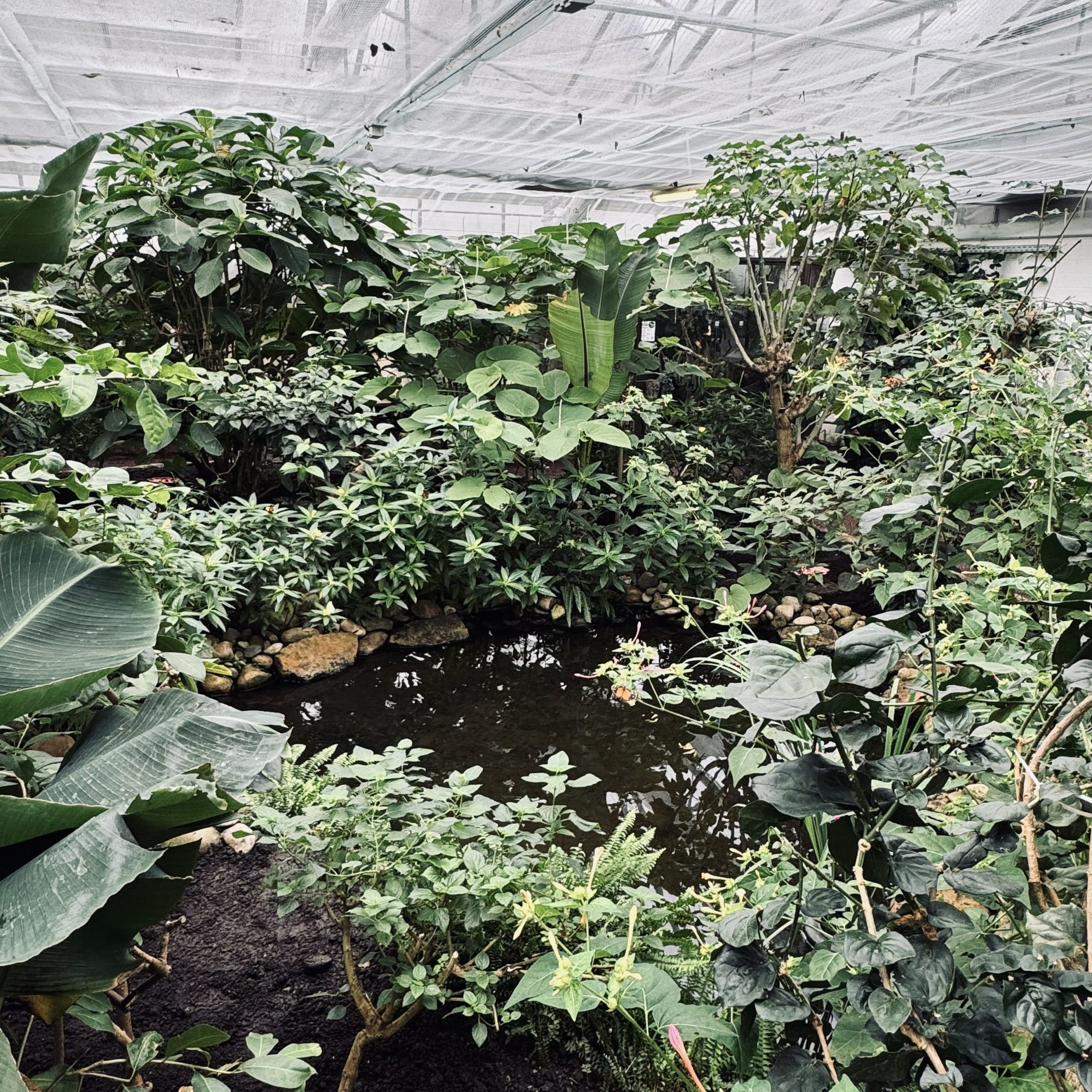 Fir unzefänken, de Gaart huet eng Fläch vu méi wéi 600 m², mat 30 bis 40 Aarte vu Päiperleken déi fräi ronderëm fléien. Mat enger konstanter Temperatur vun 28° Celsius an enger Loftfiichtegkeet vu 70 bis 80% ass dëse tropesche Gaart eng Paradäisinsel fir Päiperleken aus der ganzer Welt. Et ass definitive schnuckeleg Waarm dobannen, déck Kleeder si feel op der Plaz.