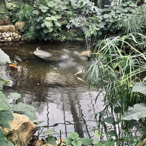 An et ass schéin, direkt wann een an den Zär era kënnt komme Päiperleke vun alle Gréisste geflunn. Et ass eng Oase vun der Rou. Einfach nëmme kucken a staunen. Kucken, mat den Ae wuel gesinn – upaken oder ublosen ass aller strengstens verbueden. An d’Päiperleke sinn net déi eenzeg Resident’en hei, ronderëm fléie Wellensitticher, Reisfinken, Unzertrennliche, Kanari Villercher, an nach méi aus der Kategorie “Sittich”. Frënn vu Fësch kommen och op hier Käschten, duerch den Zär fléisst eng Täich mat immens gutt geniert Koi’en. Déi eleng sinn nawell impressionnant ze gesinn.